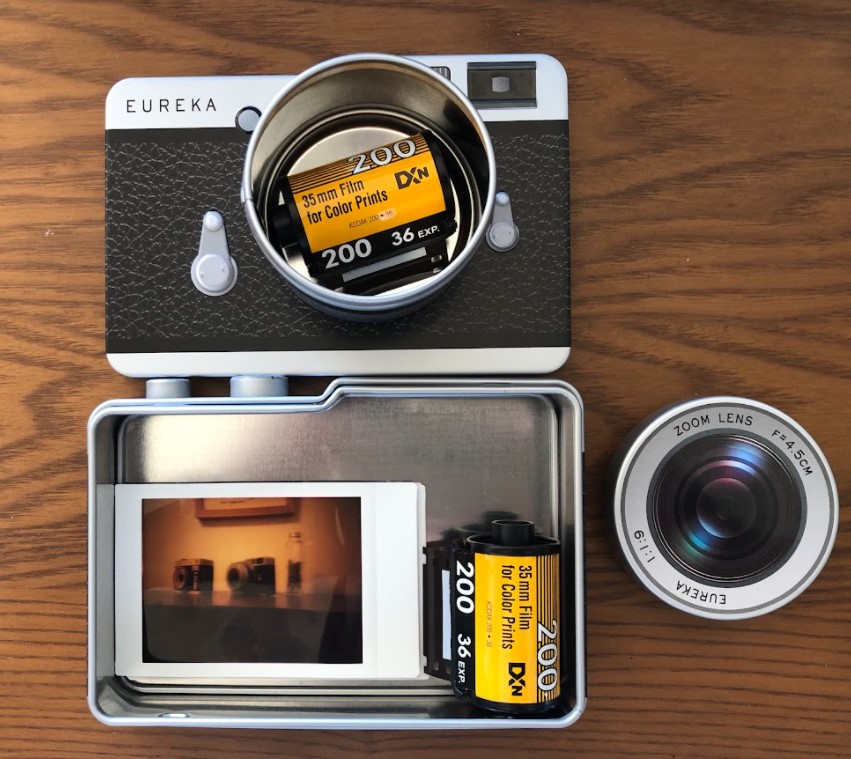カメラ缶望遠レンズはインスタントカメラ缶よりも横長で、