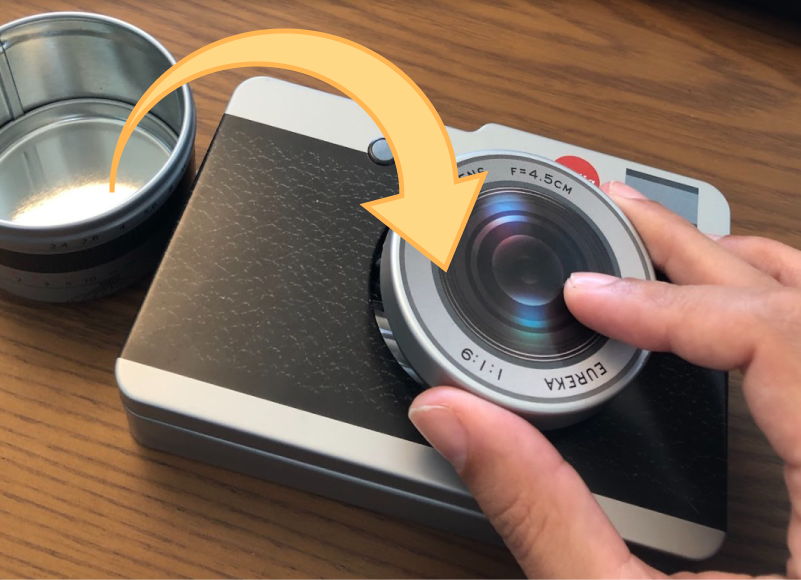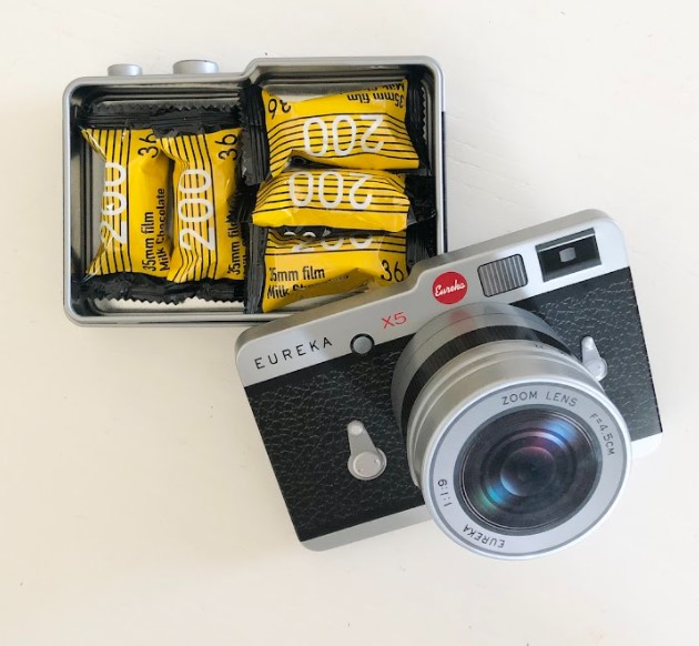 チョコレートを食べ終わってもディスプレイ兼収納にも使えるカメラ缶。