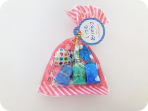 女の子向けっぽい物もありますので、子供会や、お習いごとのお子さん達に配ると喜ばれそうです!