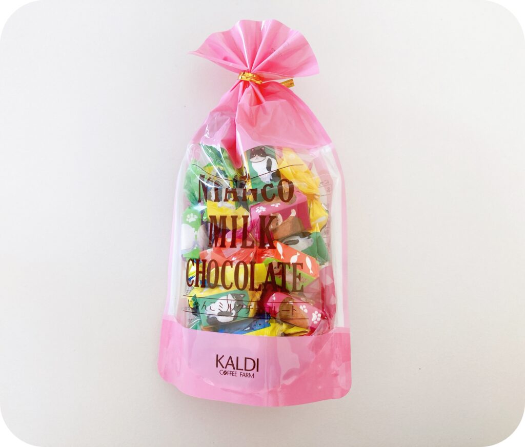 一個一個がいろんなにゃんこの包み紙でくるまれているミルクチョコレートです。これはにゃんこと暮らしている人にはたまらない!似た子を探しちゃいますね。