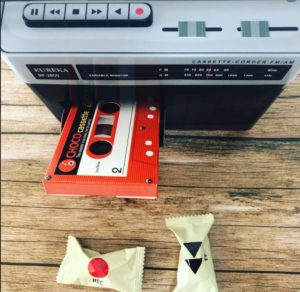 こちらの<ラジカセ缶>は昔懐かしいフォルムで、音楽好きの心をくすぐる仕上がりになっています。中に入っているのは、同じく懐かしのカセットテープ型のチョコレートです。
