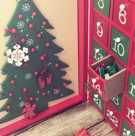 カレンダーには12月1日から24日まで24個の窓や引き出しがあり、中にチョコレートやキャンディーなどのお菓子が入っています。そして、1日1つずつ開いてお菓子をいただくことで、クリスマスまでの期間をわくわくしながら楽しむカレンダーです。