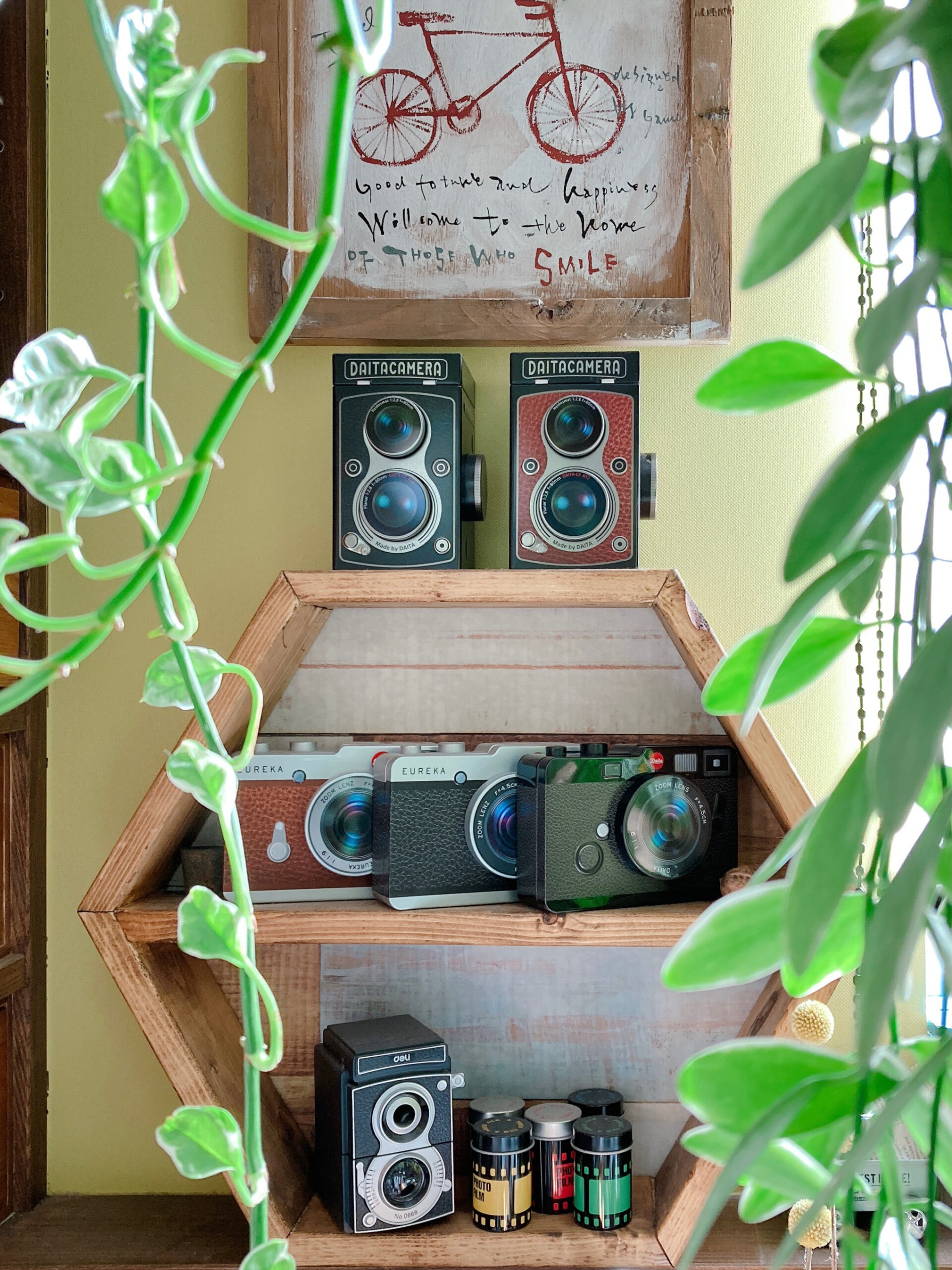 ①エウレカの全商品、缶、木製、カメラ缶、レコードプレイヤー缶、キャニスター缶、クッキー缶などなどエウレカの商品ならどれでもOK! エウレカの商品がインテリアとして日常的に飾られている写真をお願いします。 他社様の製品が写っていたり、エウレカ商品が主役になっていなくてもかまいません。