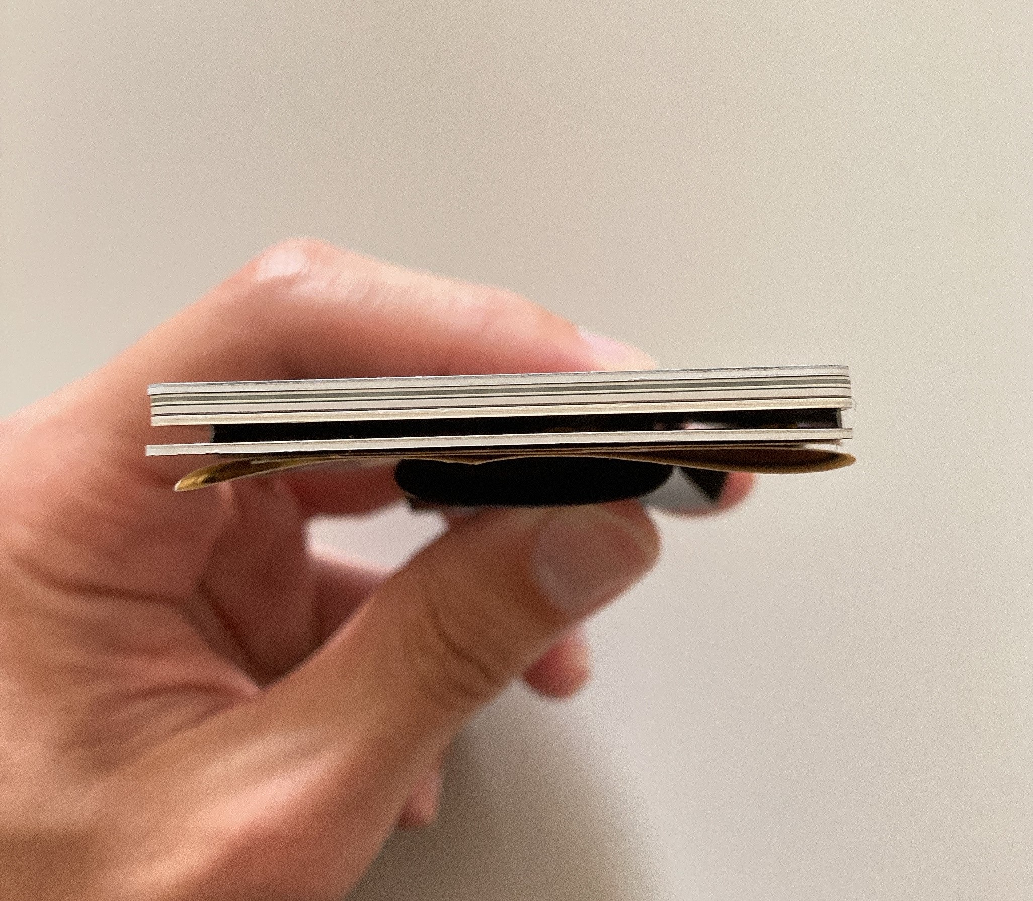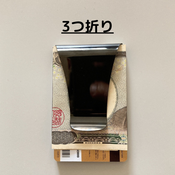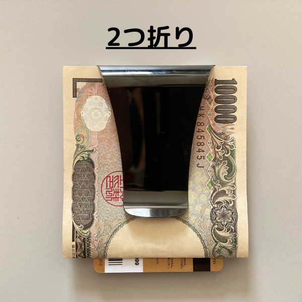 ただ2つ折りで収納するとマネークリップからはみ出してしまうので少し不格好です。