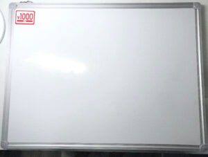1000円ですが、100均で大きなホワイトボードが売っています。こちらはDAISOのもの。