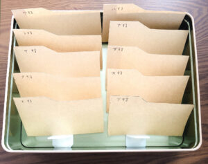 お好みで仕切りをつくって仕分けてみましょう。 今回はちょうど10個の仕切りが置けたので、 50音順になるように仕切りをつくりました! |