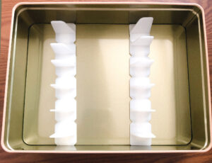 ヒンジ付き缶をあけっぱなしにしておくと、仕切りのようにも使えます。