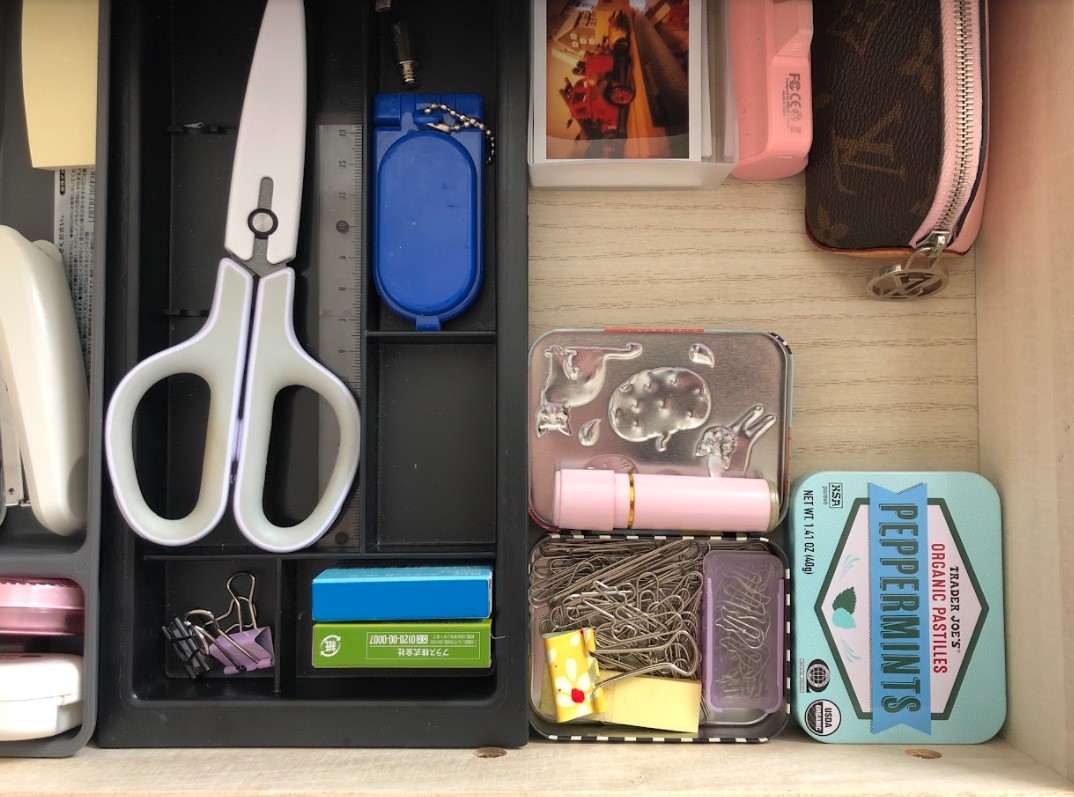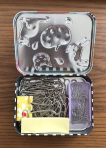 よく使うクリップや、ちいさい付箋などをミニ缶に入れたら、