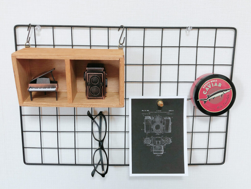 ワイヤーネット+木箱で飾り棚にしてみました!