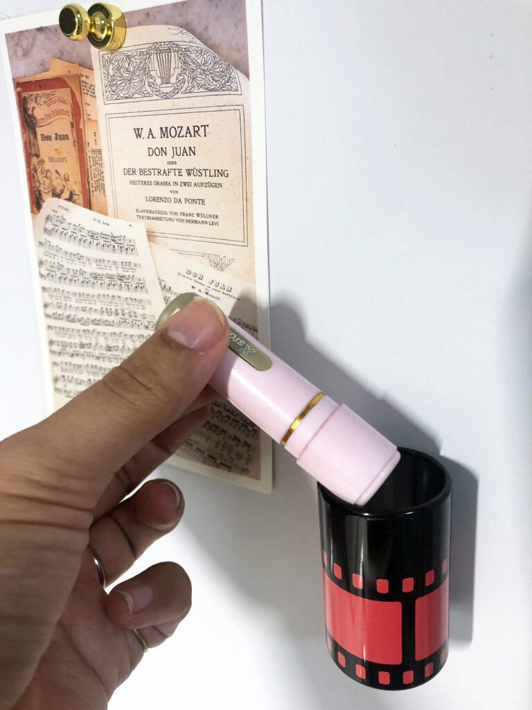 ▼写真フィルム缶のような小さいけど高さのある缶にマグネットを貼ると、