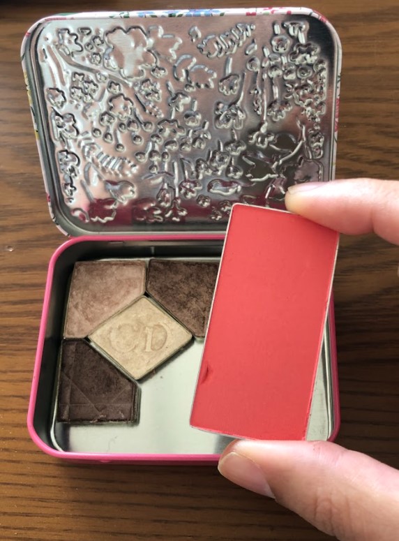 この原理でチークやハイライトも外せます。パウダーファンデーションのリフィルも入れられますね。