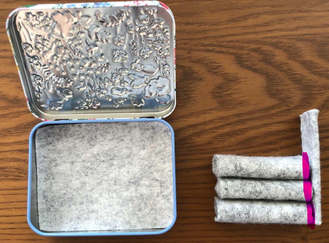 写真フィルム缶の中に羊毛フェルトを入れるだけで針刺しができちゃいます。