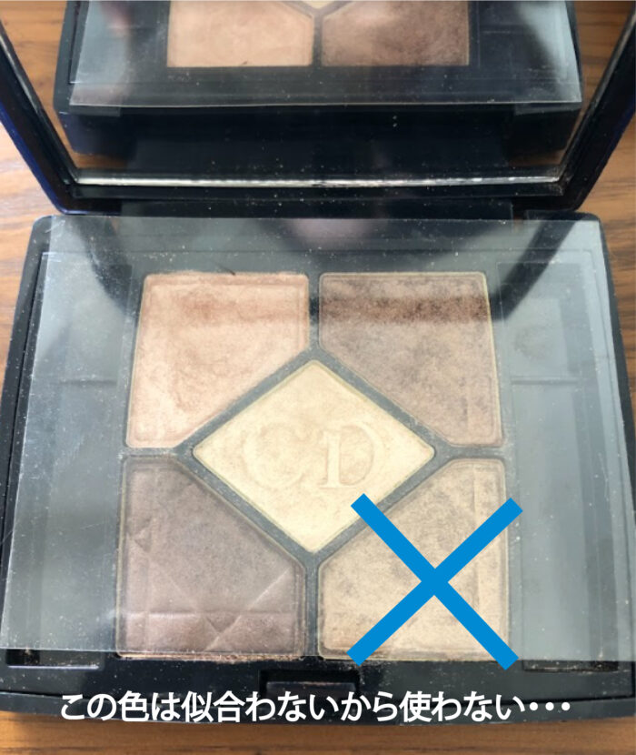 また、この色のアイシャドウって使わないけど、パレットの中に入っているから仕方なく持ち運んでいる・・・というのも、