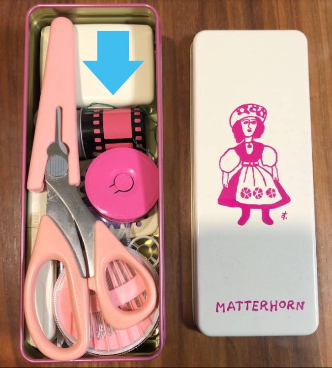 ちなみに裁縫道具として使用しているレトロかわいい缶は、