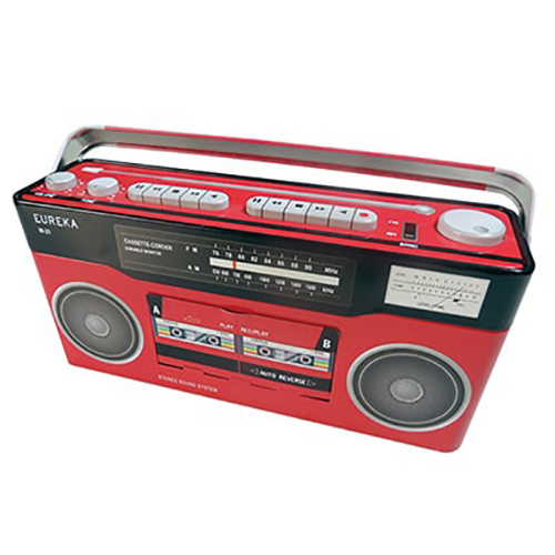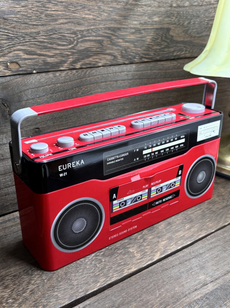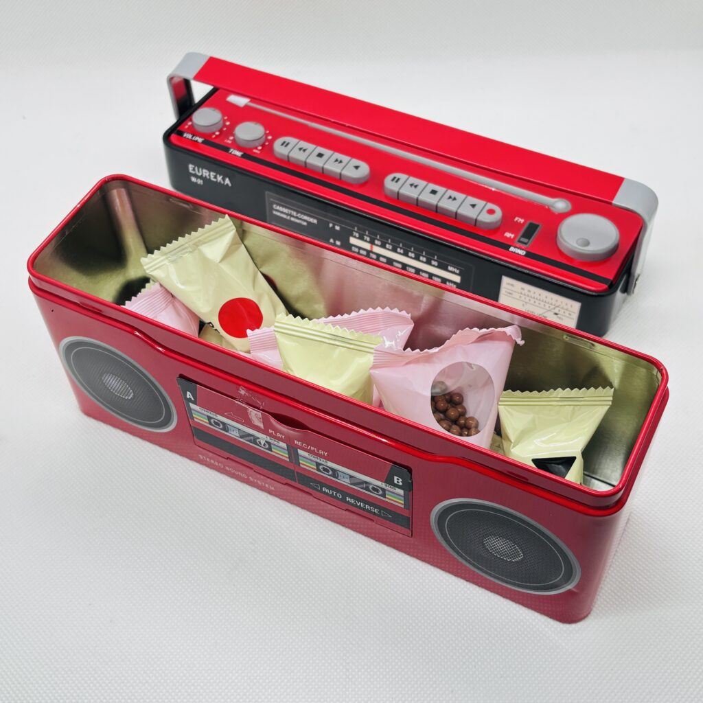 置いておきたい✨目を引くレッドとデザインのラジカセ缶!