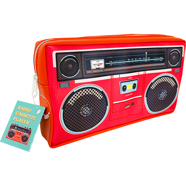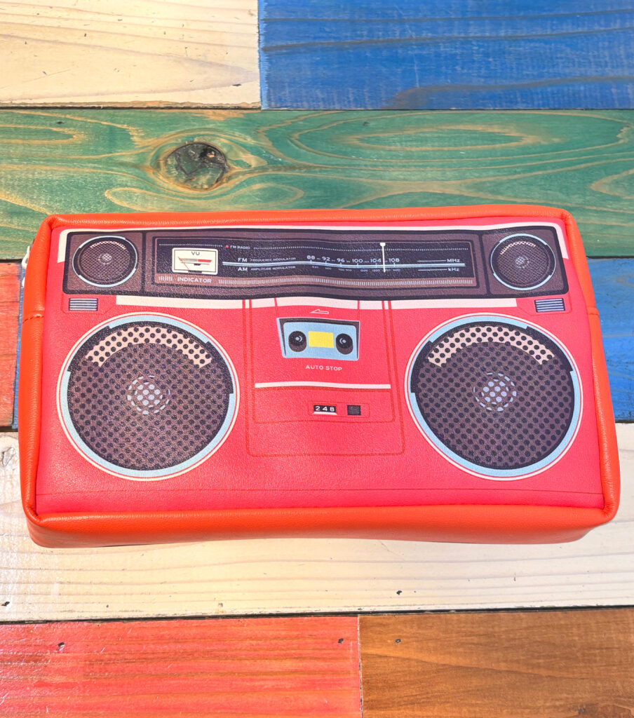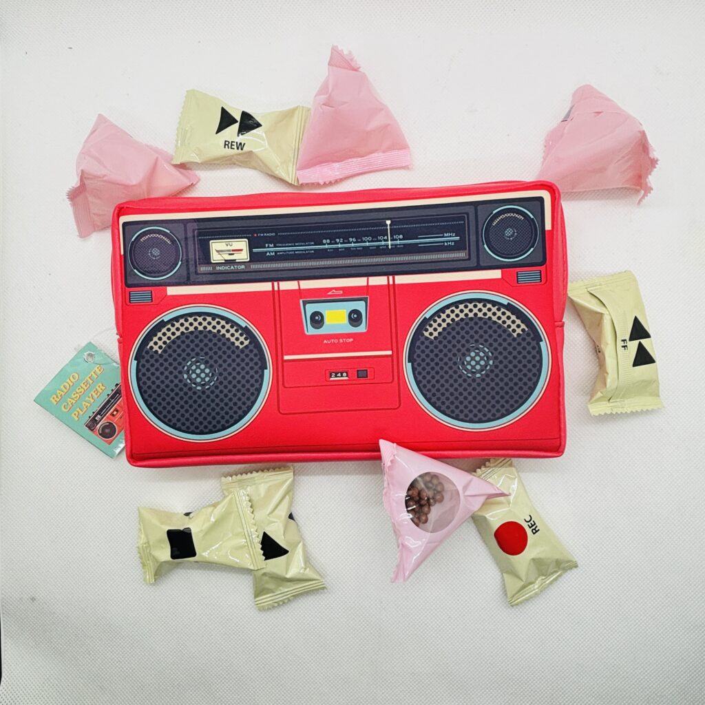 ビビッドなレッドがとってもキャッチーなラジカセデザインのポーチです♪
