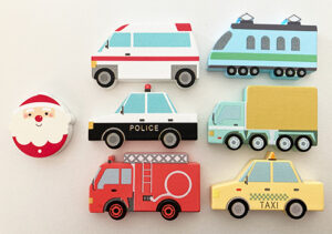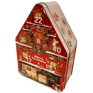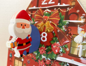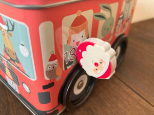 サンタには磁石が付いていて、ハウス缶にくっつくので、周りの日付を移動していくアドベントカレンダーです。
