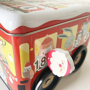 サンタには磁石が付いていて、ハウス缶にくっつくので、周りの日付を移動していくアドベントカレンダーです。