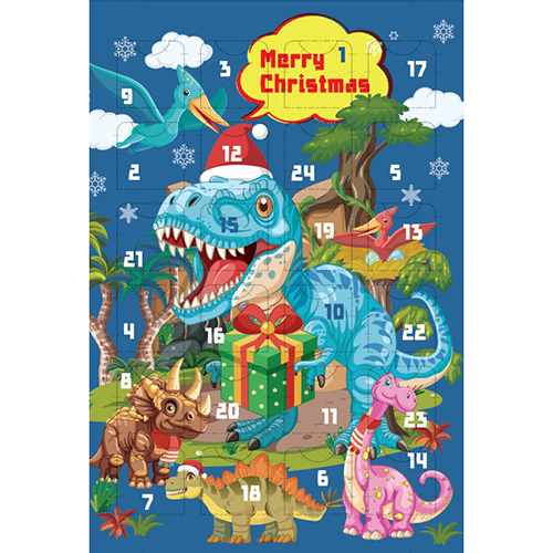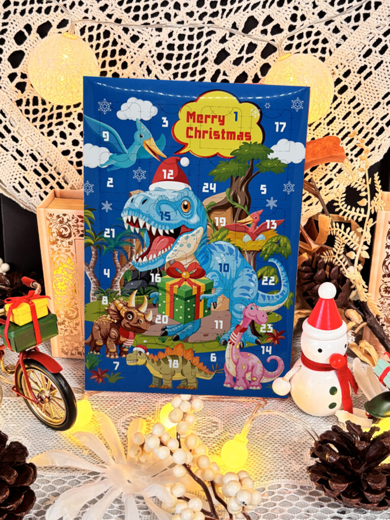 サンタ帽子をかぶったかわいい恐竜のアドベントカレンダーです🦖💖