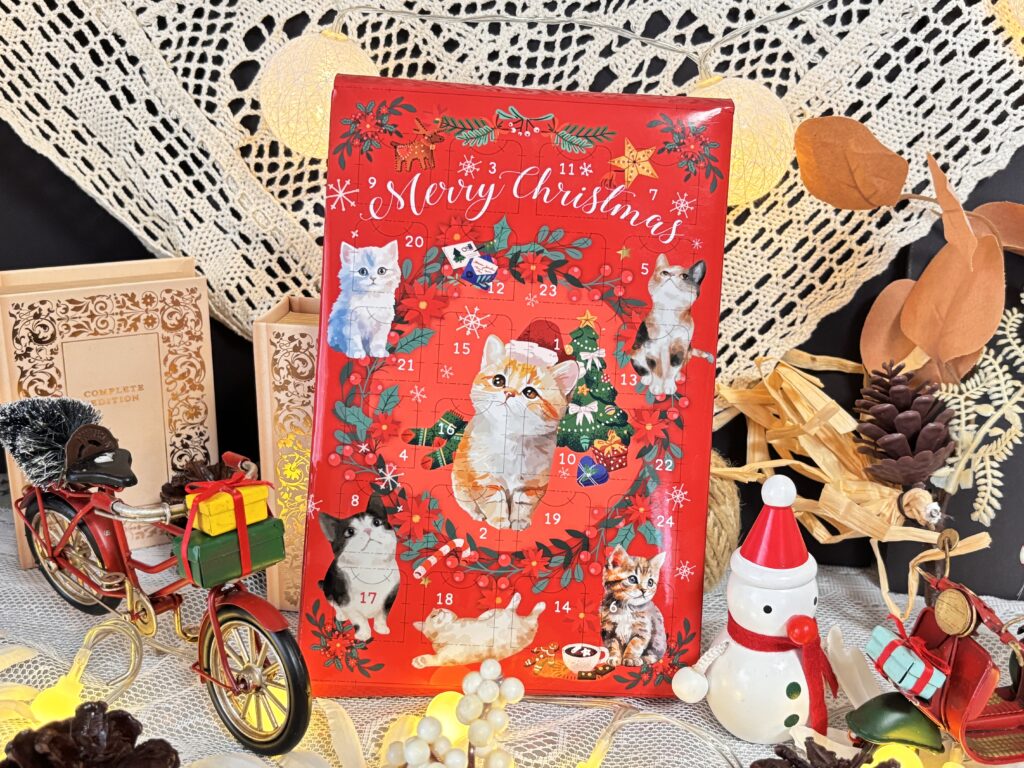 サンタ帽子をかぶった子猫ちゃんがとてもかわいい、アドベントカレンダーです😽