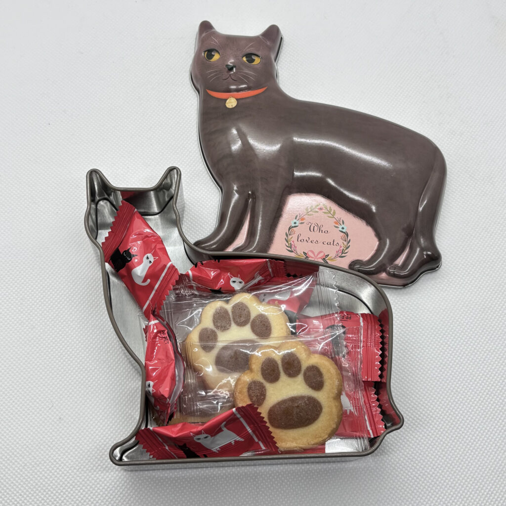 ネコの形をしたユニークな缶です🐾