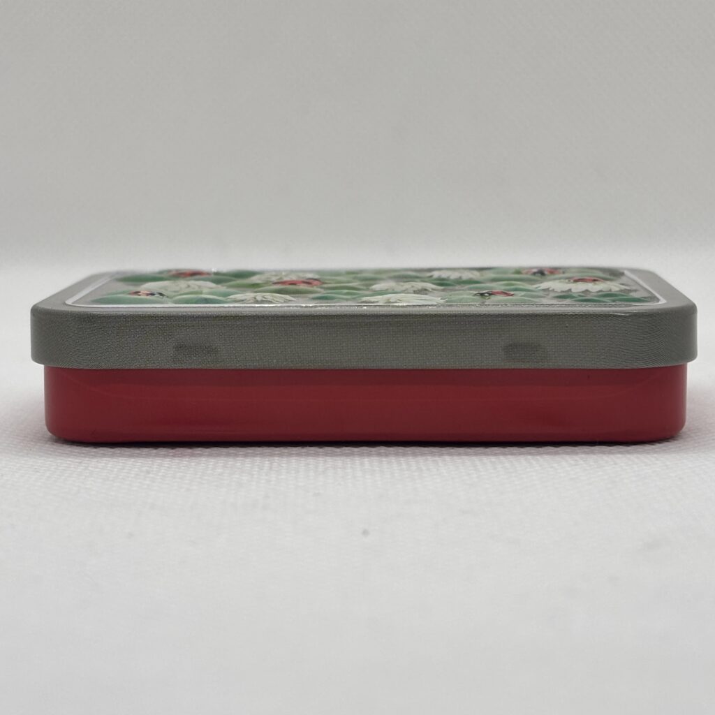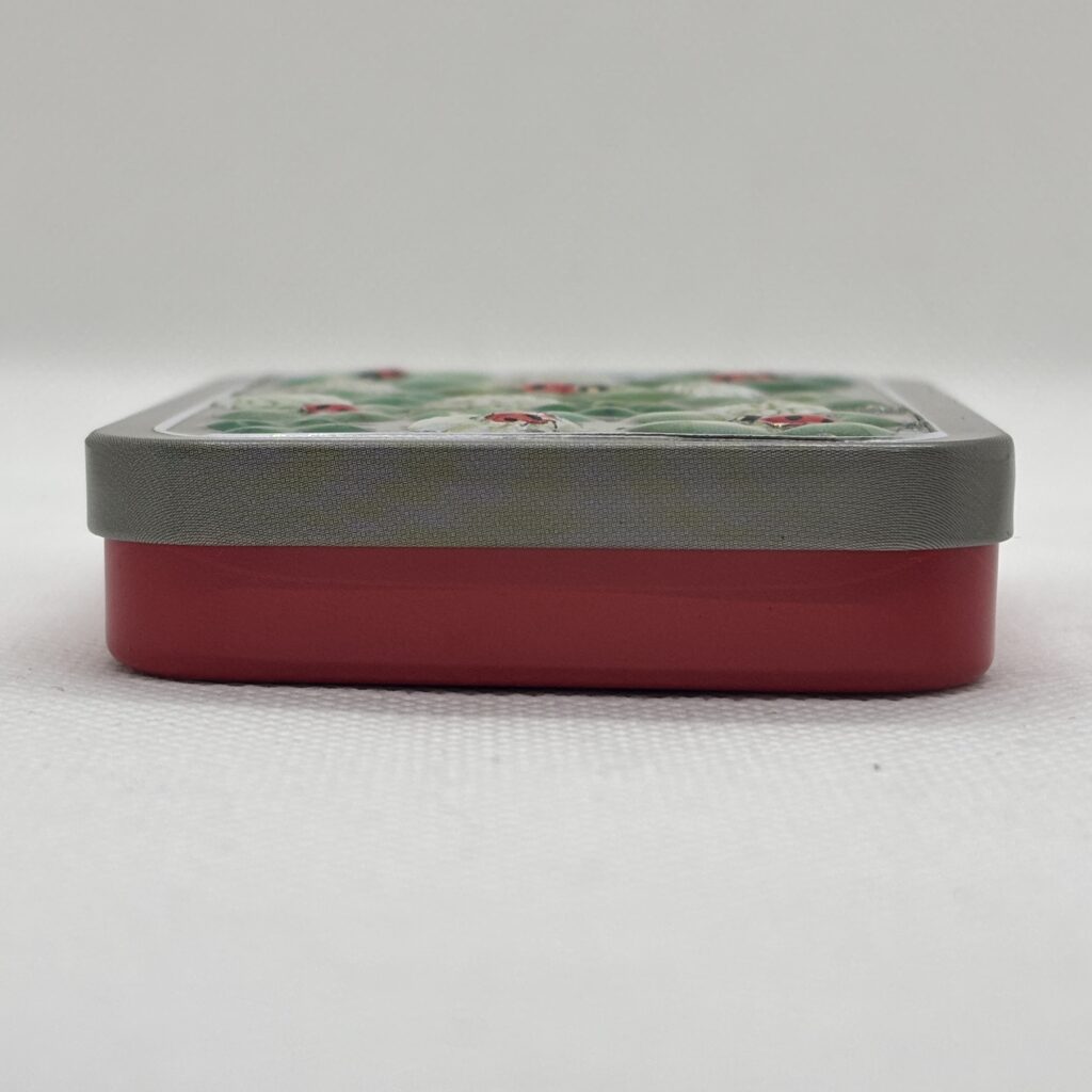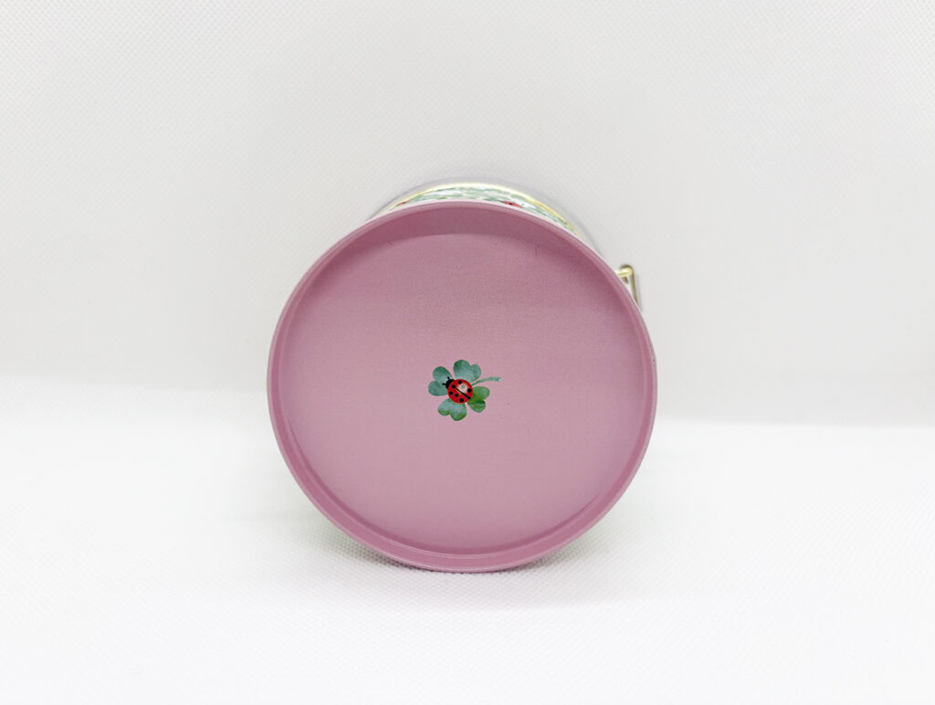 四つ葉のクローバーとテントウムシをデザインしたミニ缶です🐞
