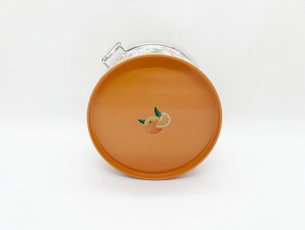 オレンジデザインのクッキー缶です🍊 蓋が透明なので、お菓子を食べた後の収納としても大活躍です🎁