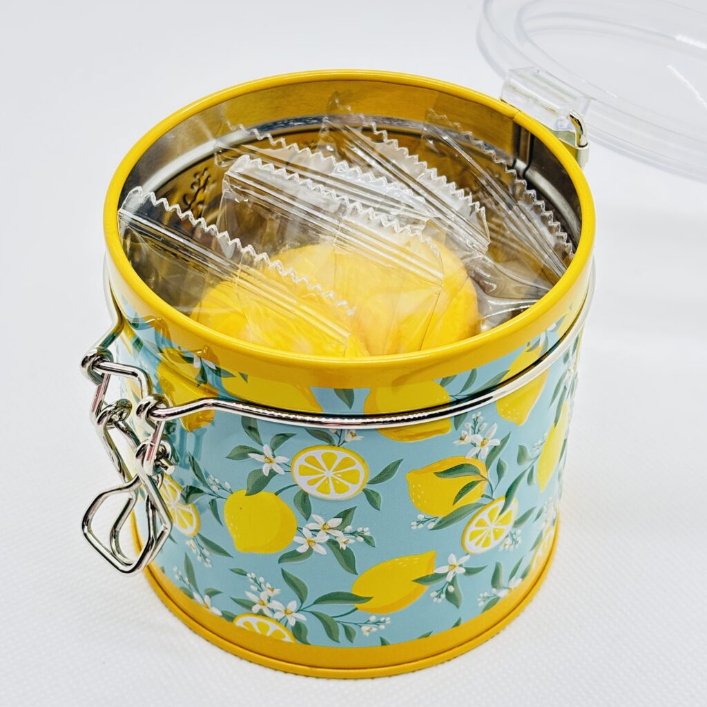 レモンをモチーフにした爽やかなクッキー缶です🍋 蓋が透明なので、お菓子を食べた後の収納としても大活躍です🎁