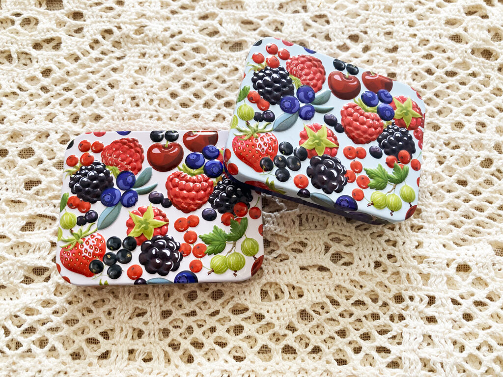 ベリー柄のミニ缶です🫐 甘いキャンディ入りでプチギフトにおすすめ🎀