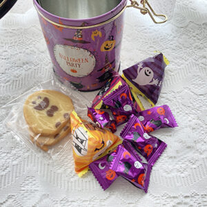 ハロウィンキャニスター缶(パープル・オレンジ) 税込680円