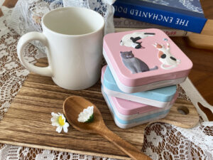 などなど!こまごましたものを入れておくのに便利なスクエア缶です。