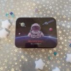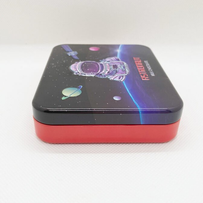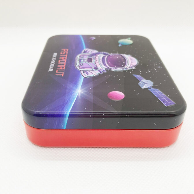 宇宙飛行士をデザインした缶にエンボス加工を施しました。