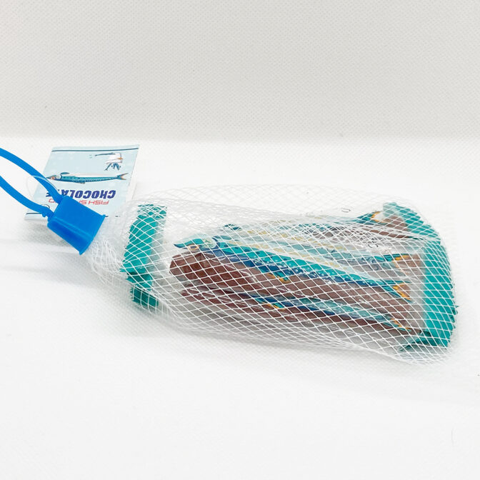 釣果をイメージさせるネット入りの魚チョコです。