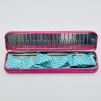 鍵盤ハーモニカを模した缶です。懐かしい鍵盤がスリムなサイズになって手軽で可愛いです。