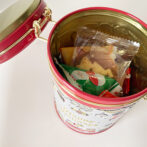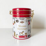 食品の保存に適したキャニスター缶です。中にはクッキー・キャンディ・ラムネが入っています。