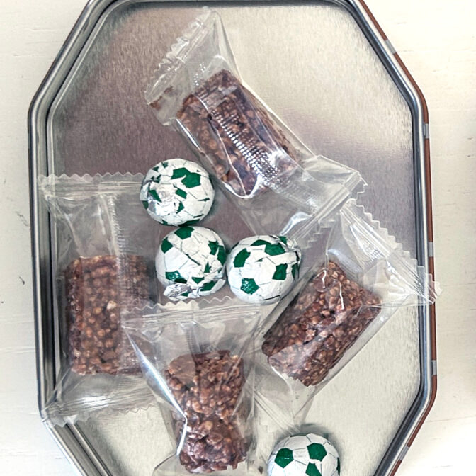 中にはサッカーボールチョコとクランチチョコが4個ずつ入っています。