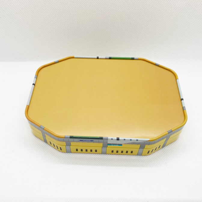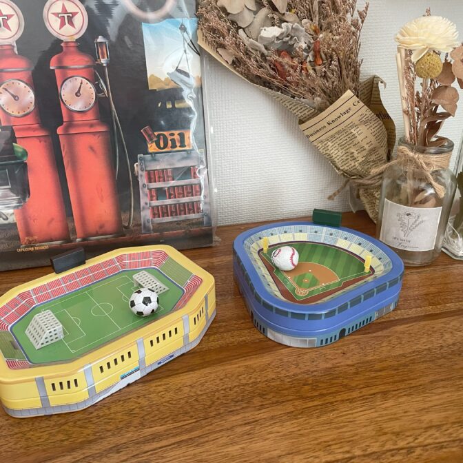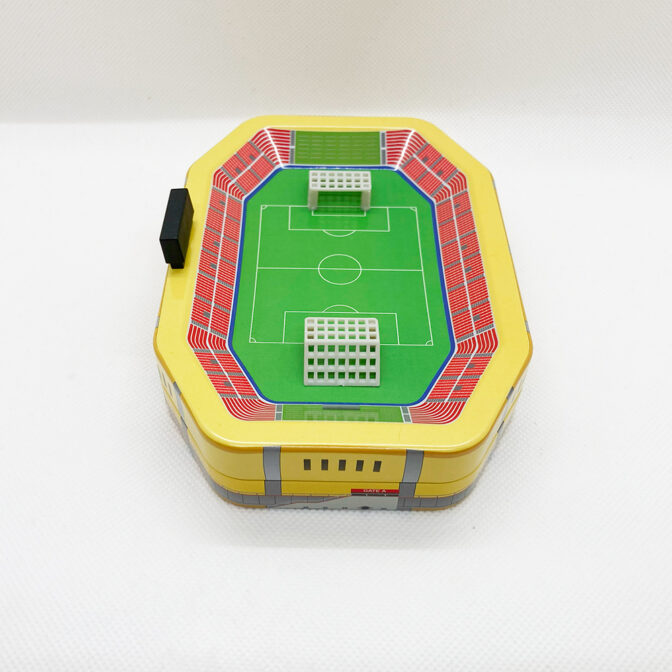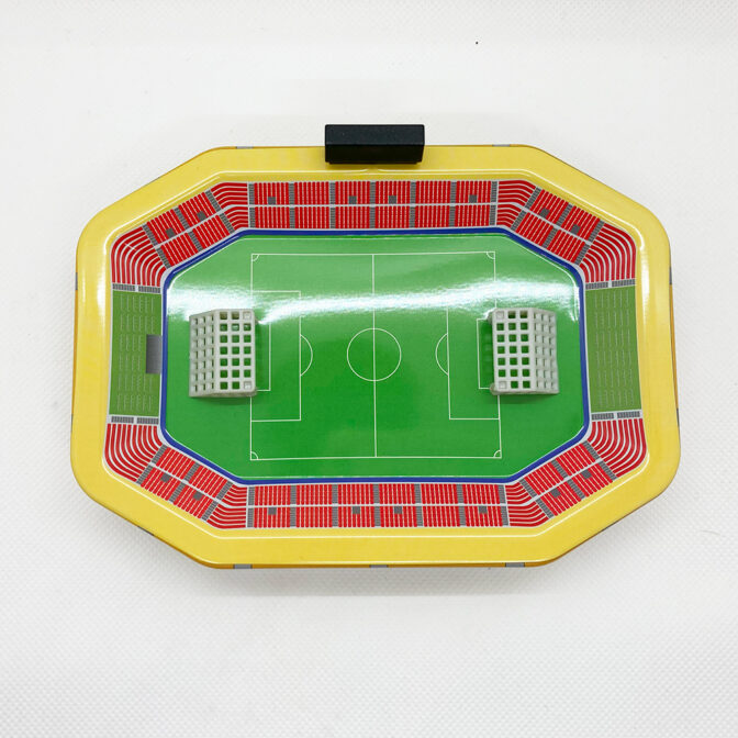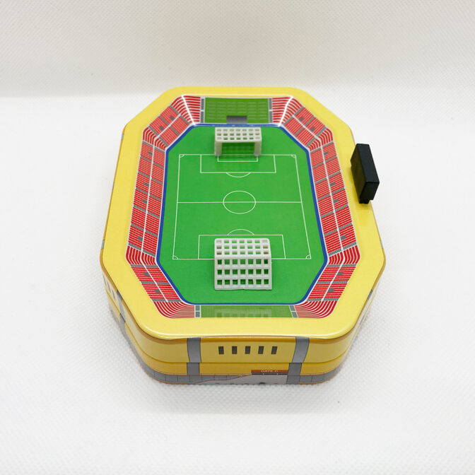 立体的なサッカースタジアムデザインの缶です。カラーがリニューアルして再登場です。