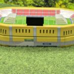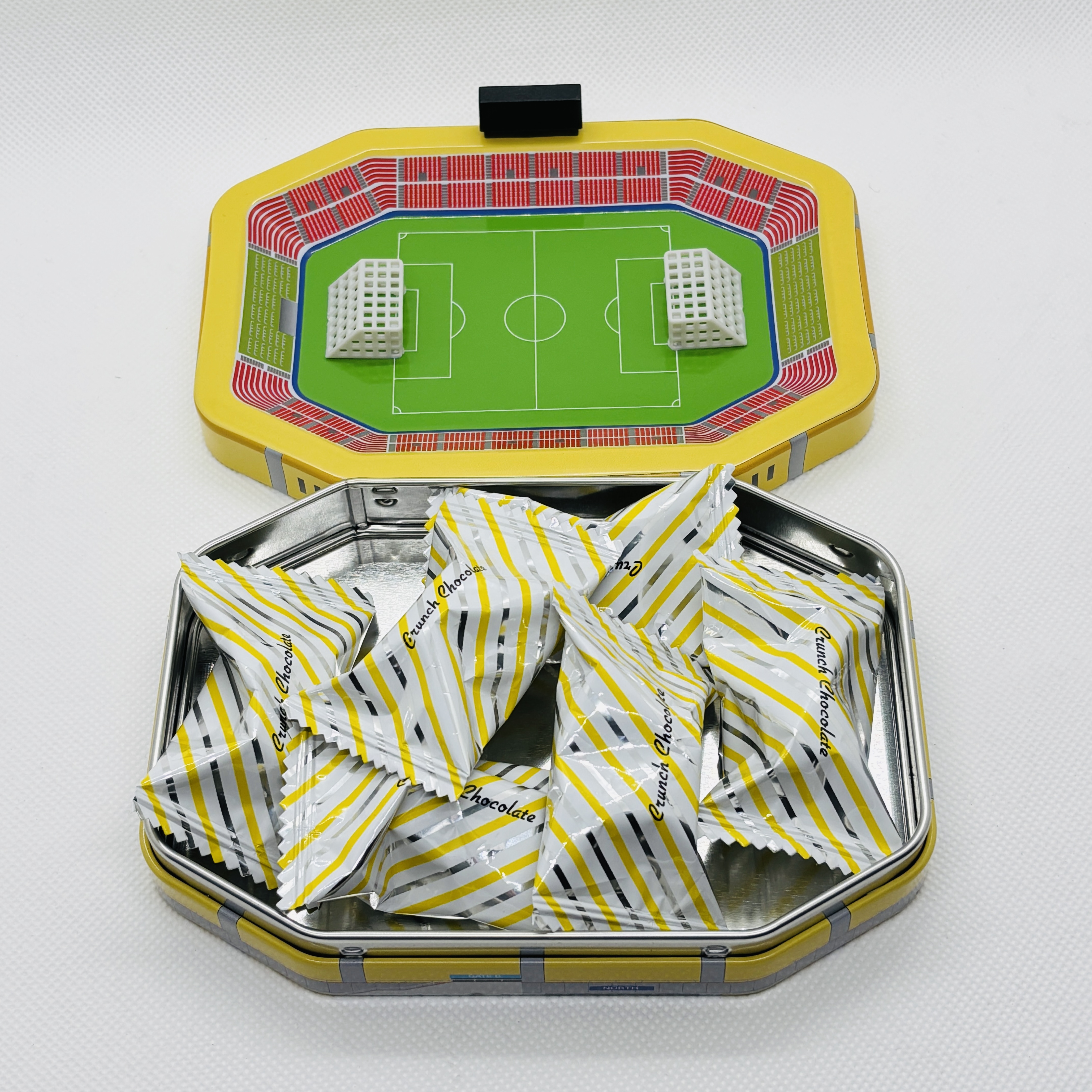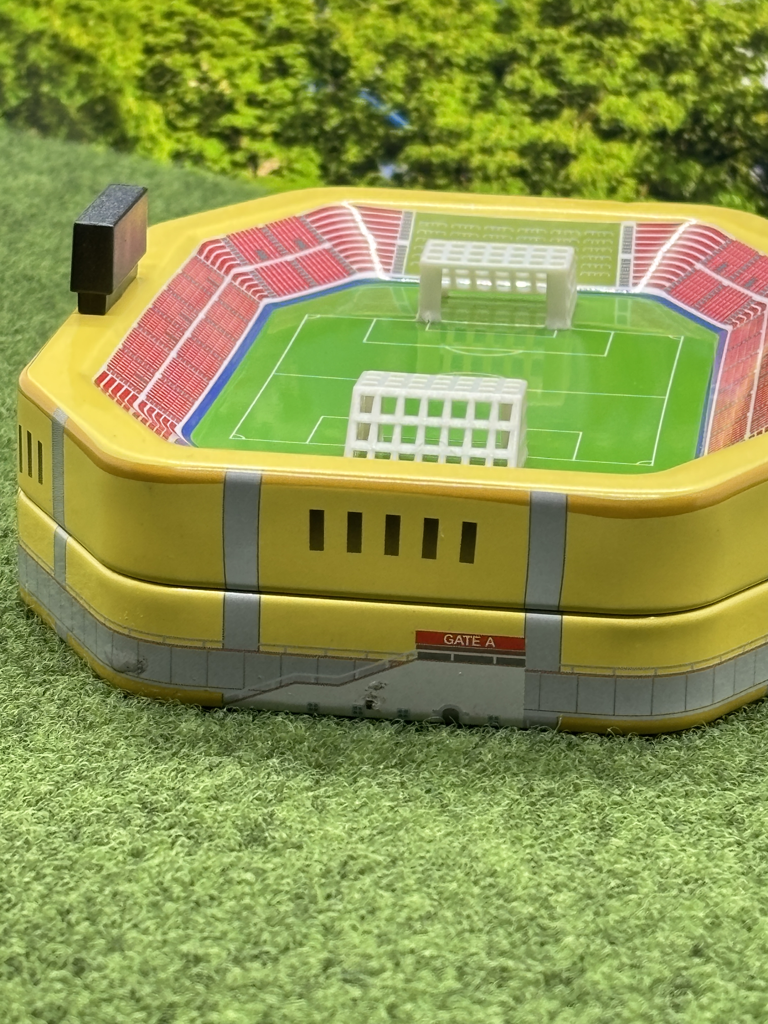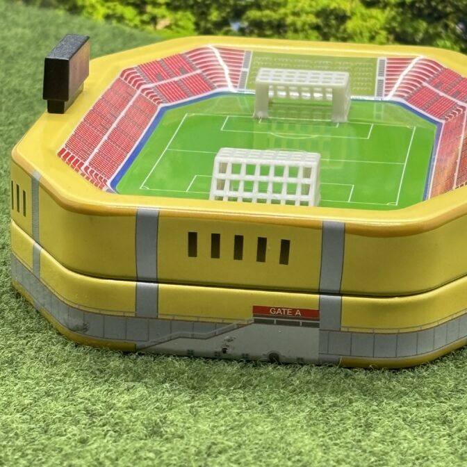 立体的なサッカースタジアムデザインの缶です。