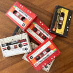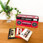 レトロかわいいカセットテープの紙箱の中に、カセットテープ型のチョコレートが入った商品です。