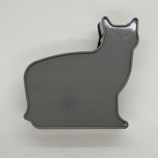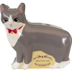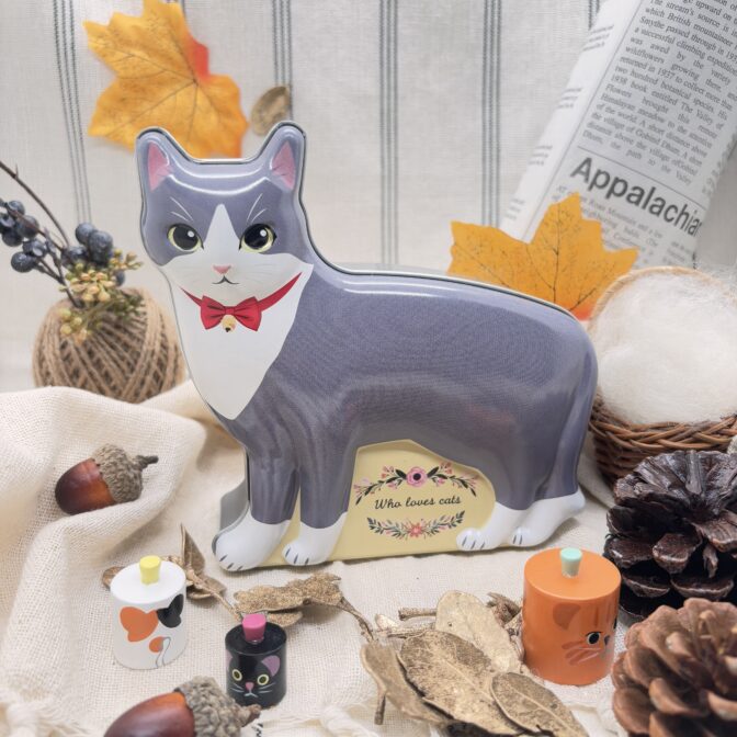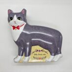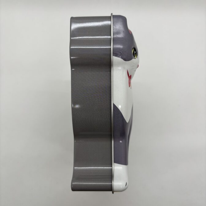 ハチワレのネコの形をデザインした缶です。ストロベリー風味キャンディ8個と肉球型のクッキー3個が入っています。