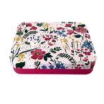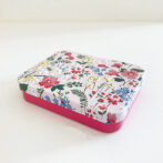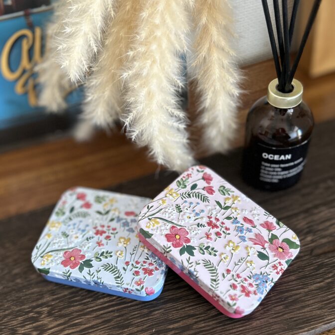 春らしい花柄のミニスクエア缶です。中にはイチゴミルク風味のキャンディが入っています。