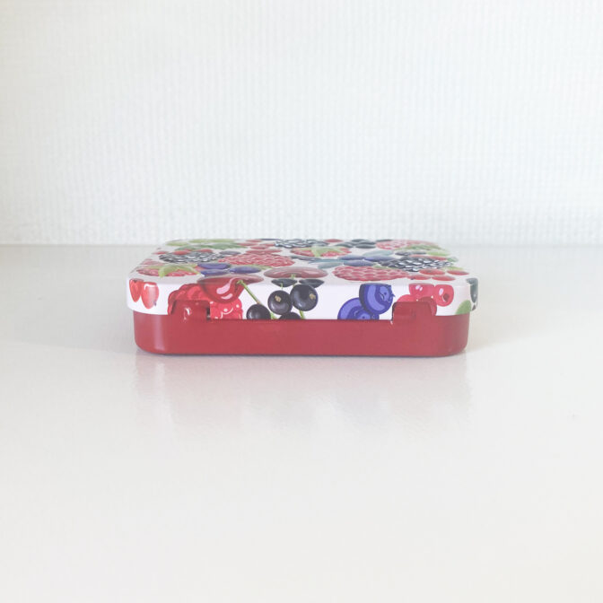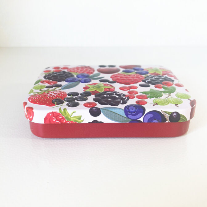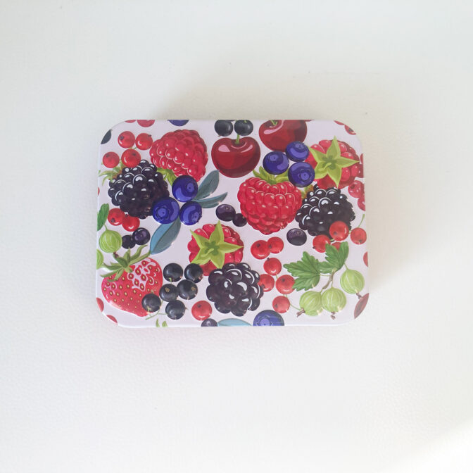 ベリー柄のミニ缶です。中にはベリー風味のコンペイトーが入っています。