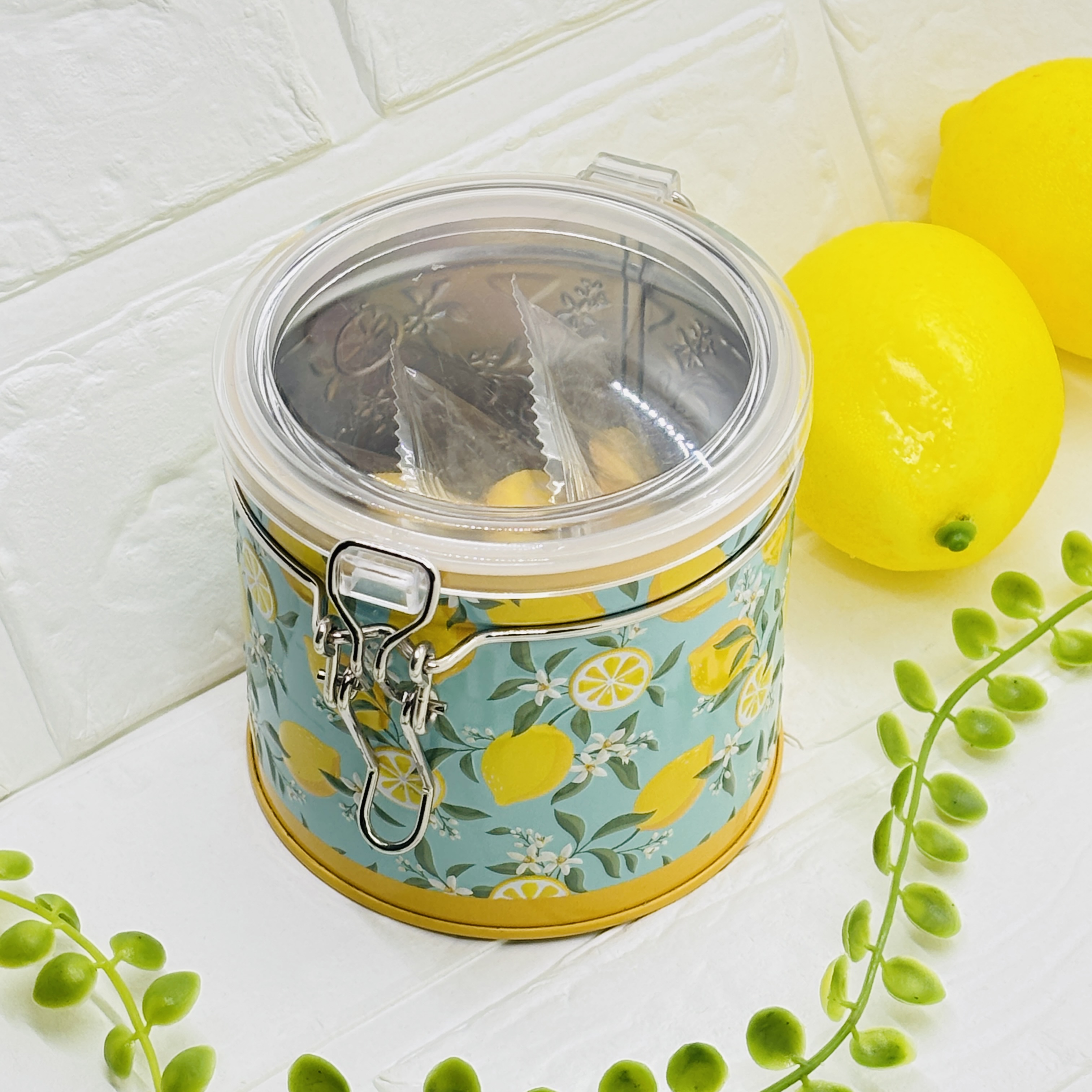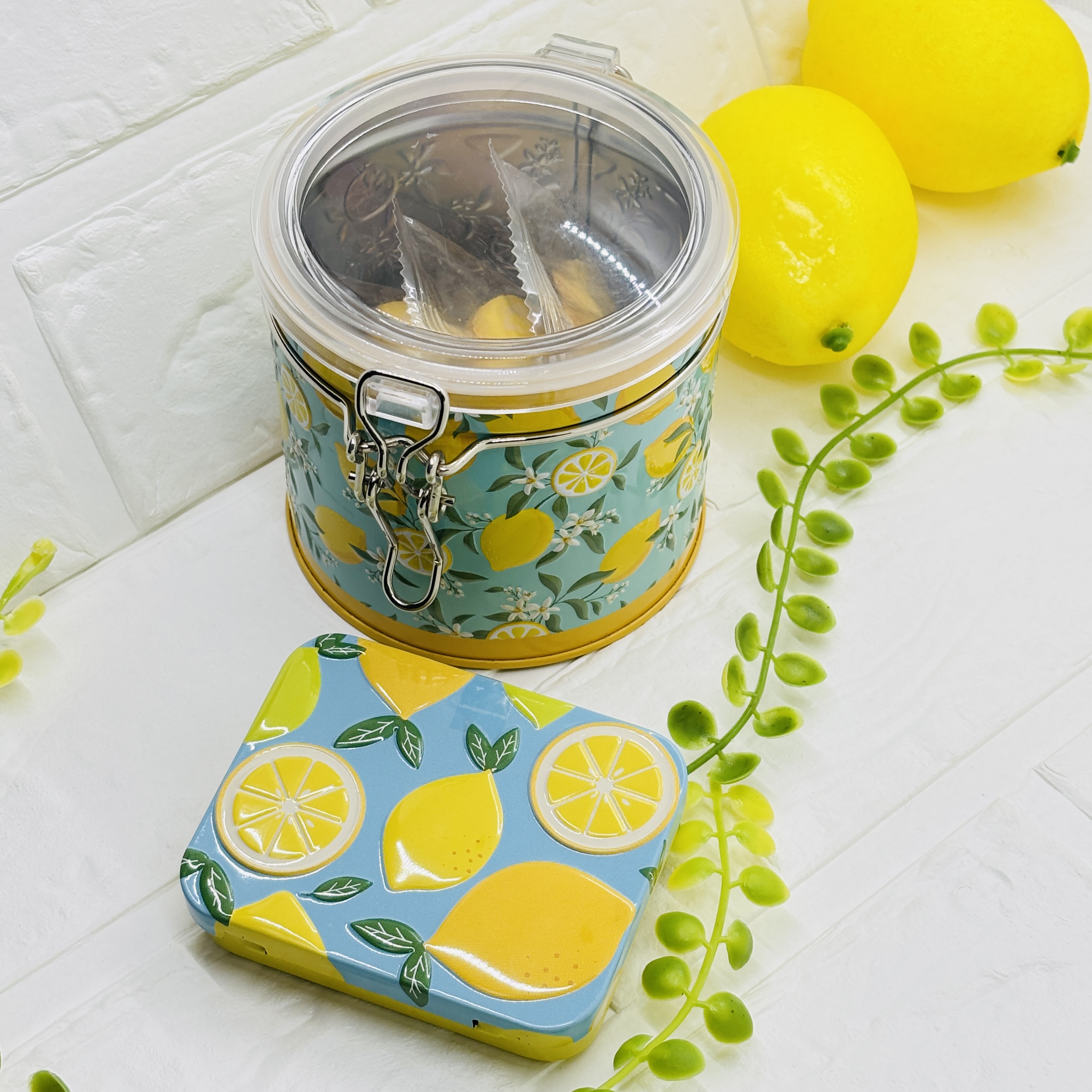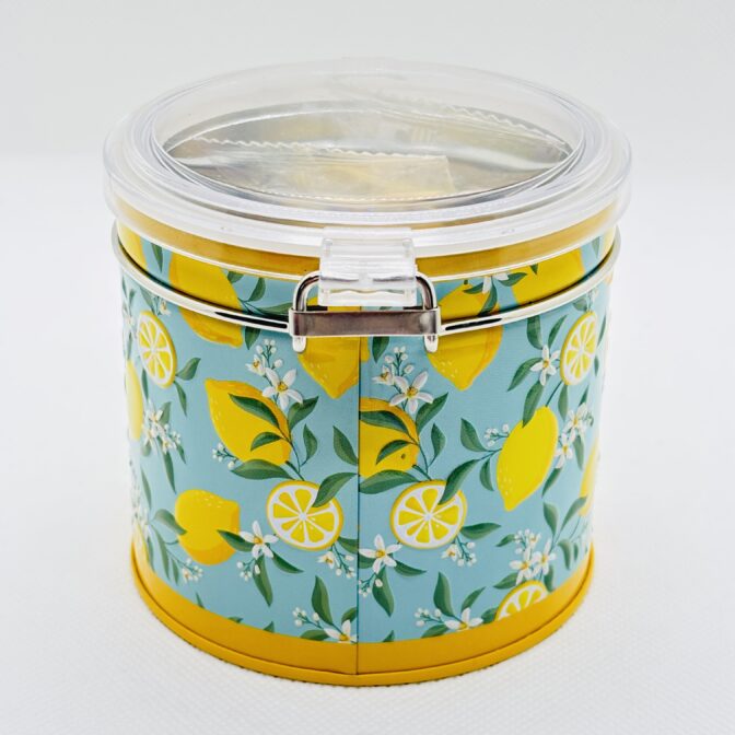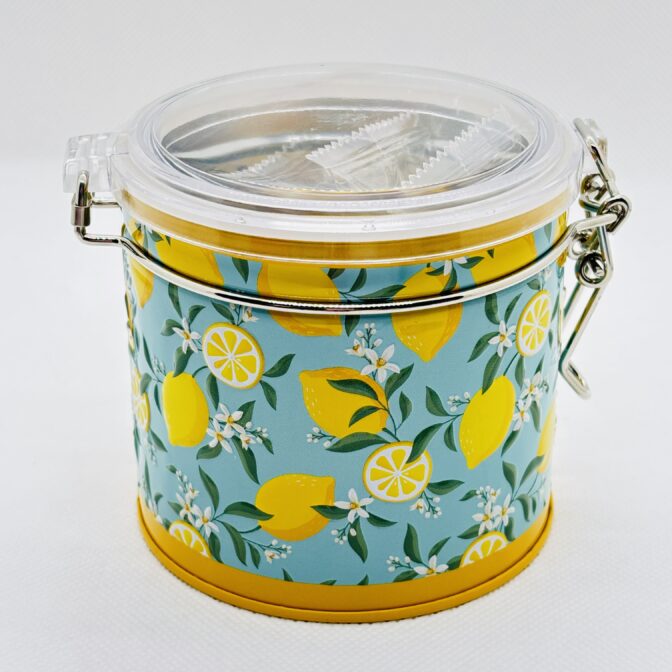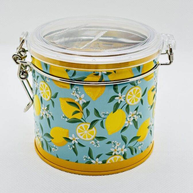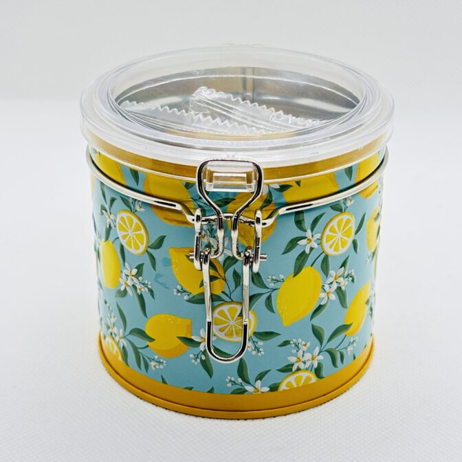 レモン柄の爽やかなキャニスター缶です。