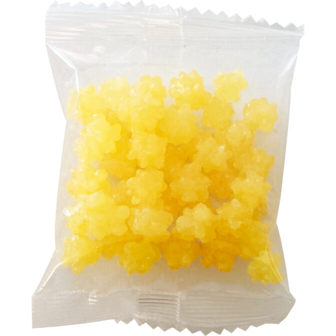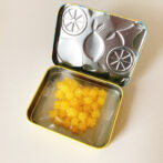 レモン柄のミニ缶です。中にはレモン風味の金平糖が入っています。