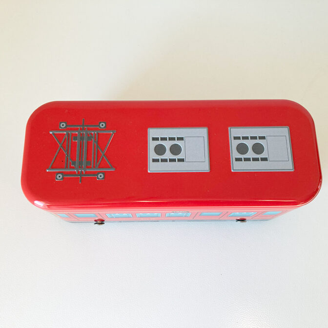 電車のデザインを施した缶です。