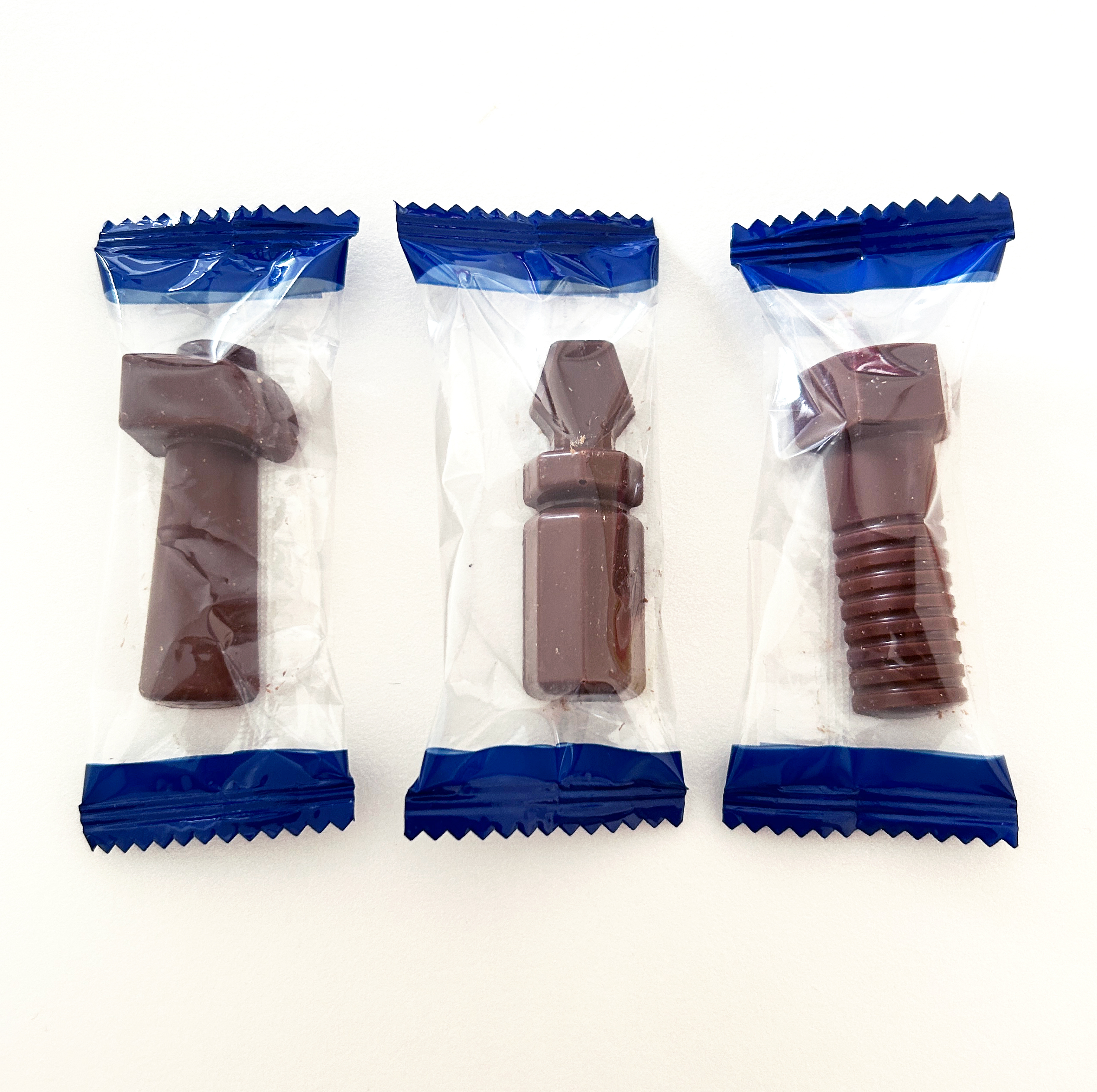 ドライバー、ハンマー、ボルトの形のチョコレートが計6個