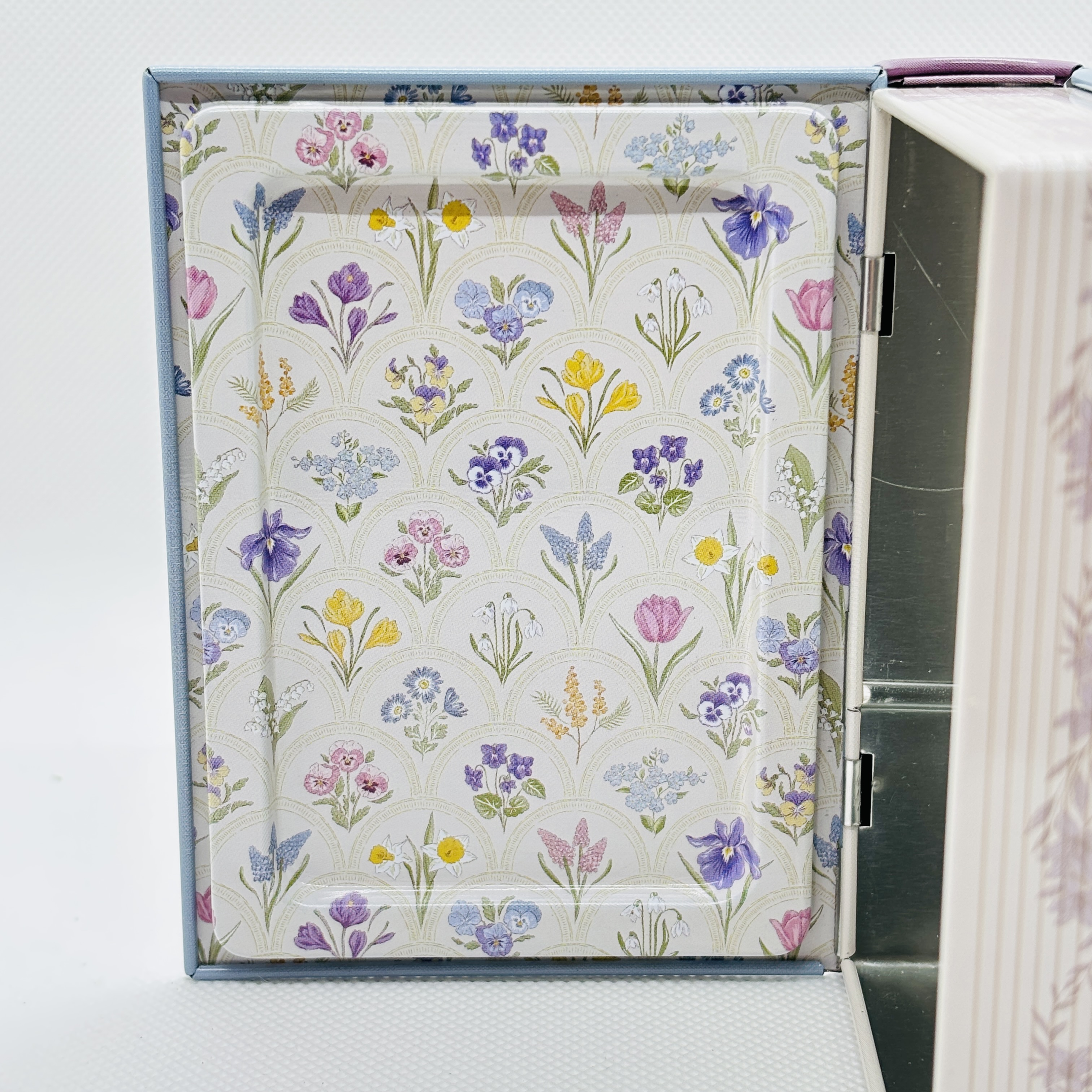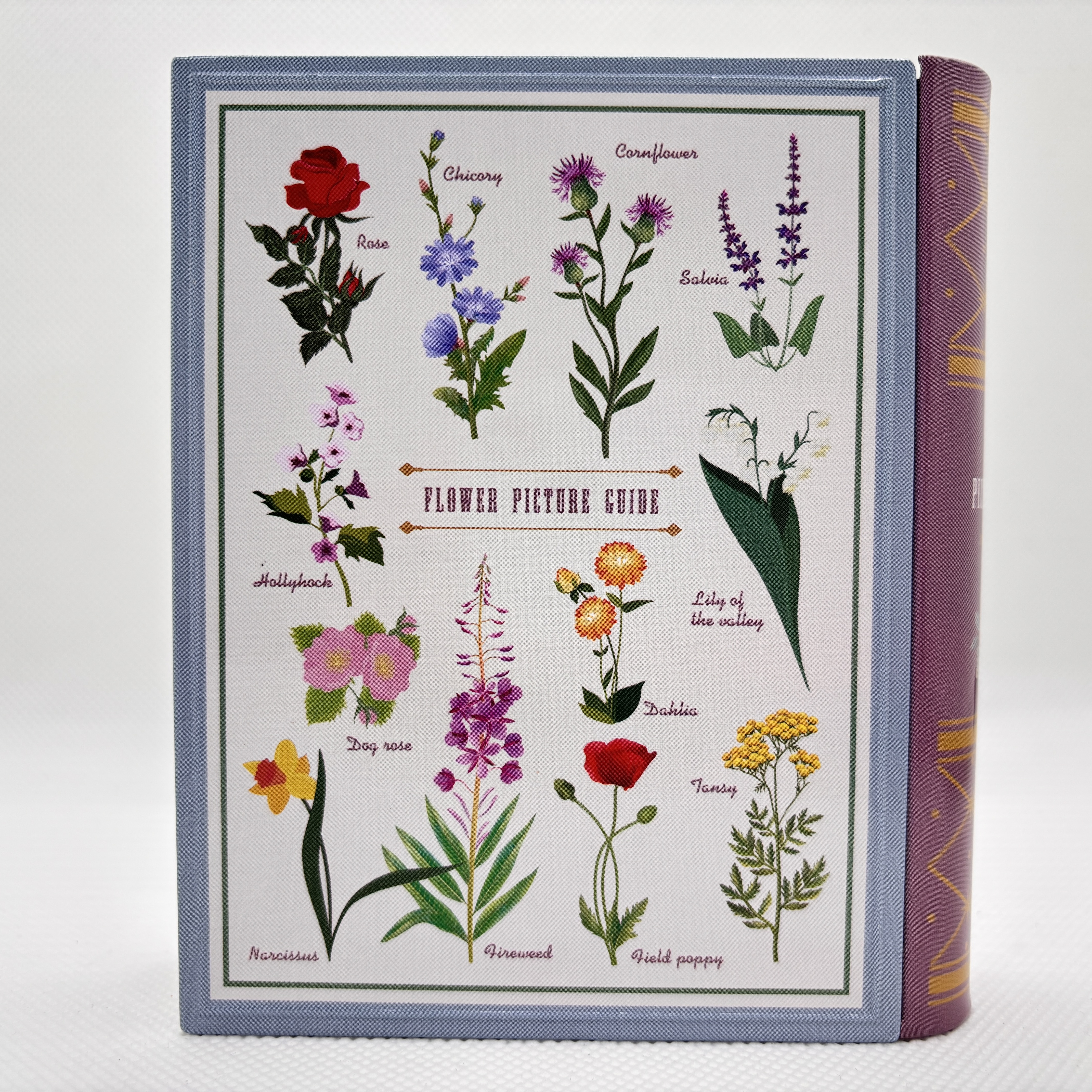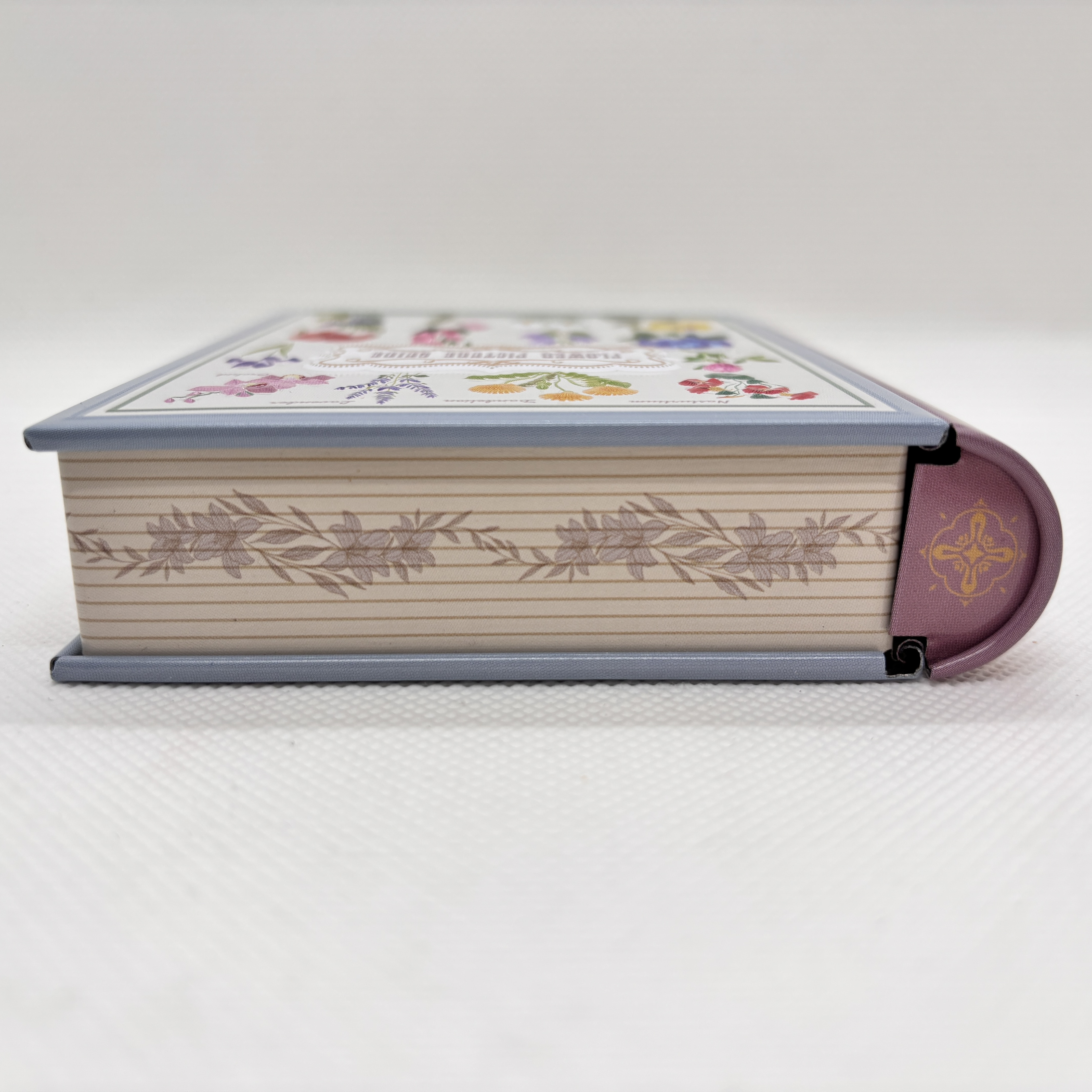 花の図鑑をデザインし、エンボス加工を施したブック缶です。