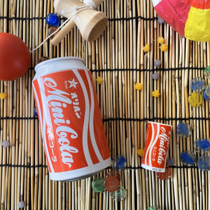 昔懐かし、みんな大好きな駄菓子「ミニコーラ」をデザインした缶です。