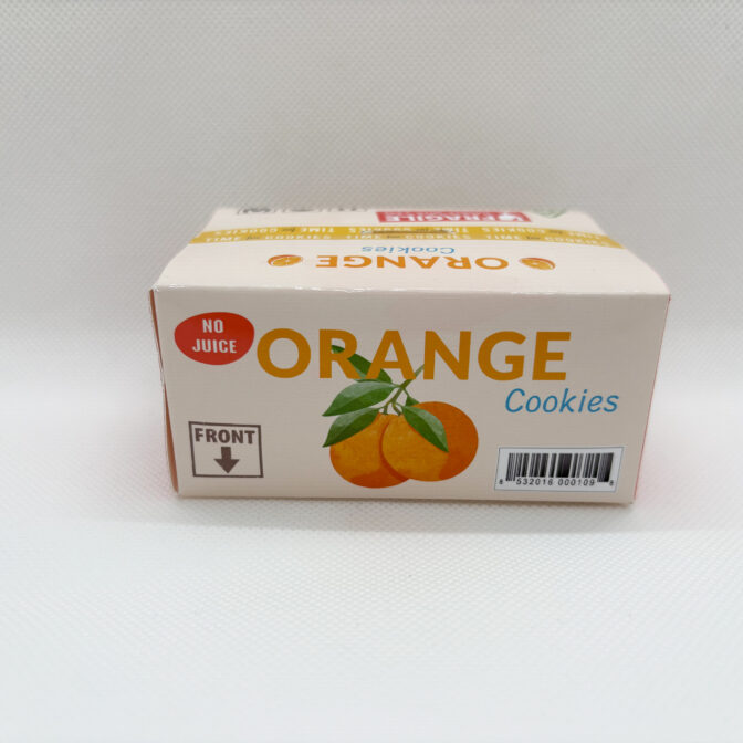 オレンジの出荷時をイメージしたカートンボックスにオレンジ風味のクッキーを詰め込みました。