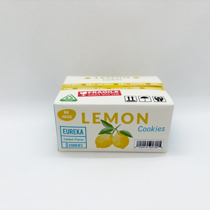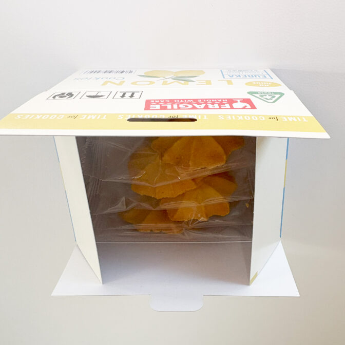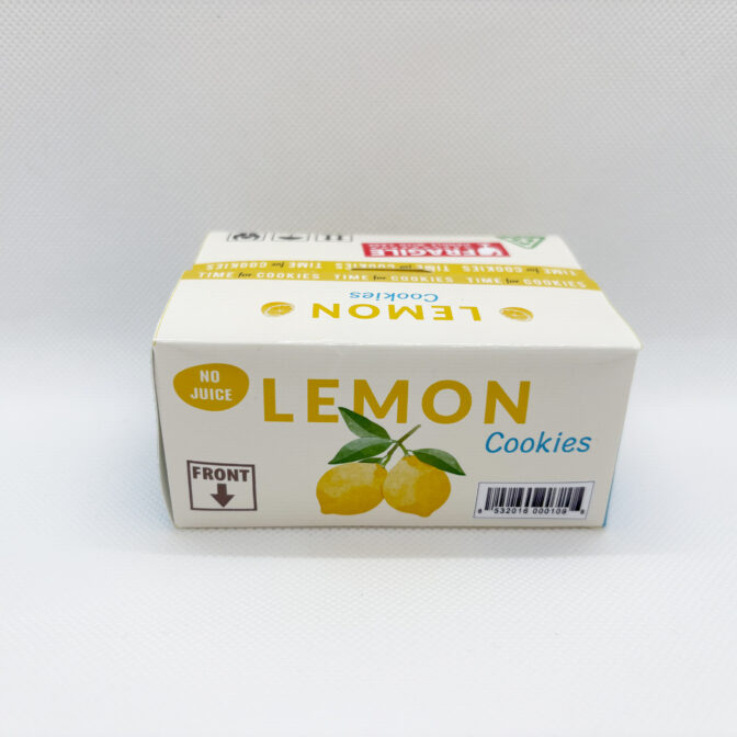 レモンの出荷時をイメージしたカートンボックスにレモン風味のクッキーを詰め込みました。
